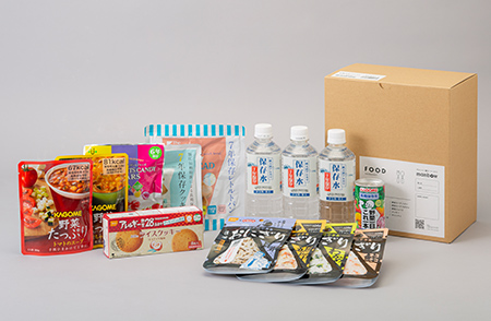 まず、⾮常⾷セットを開発する際に栄養素が偏らないように注意しました。アルファ⽶や⽸⼊りパンなど⼀般的な⾮常⾷だけでは不⾜しがちな栄養素を補えるような商品を選定しました。